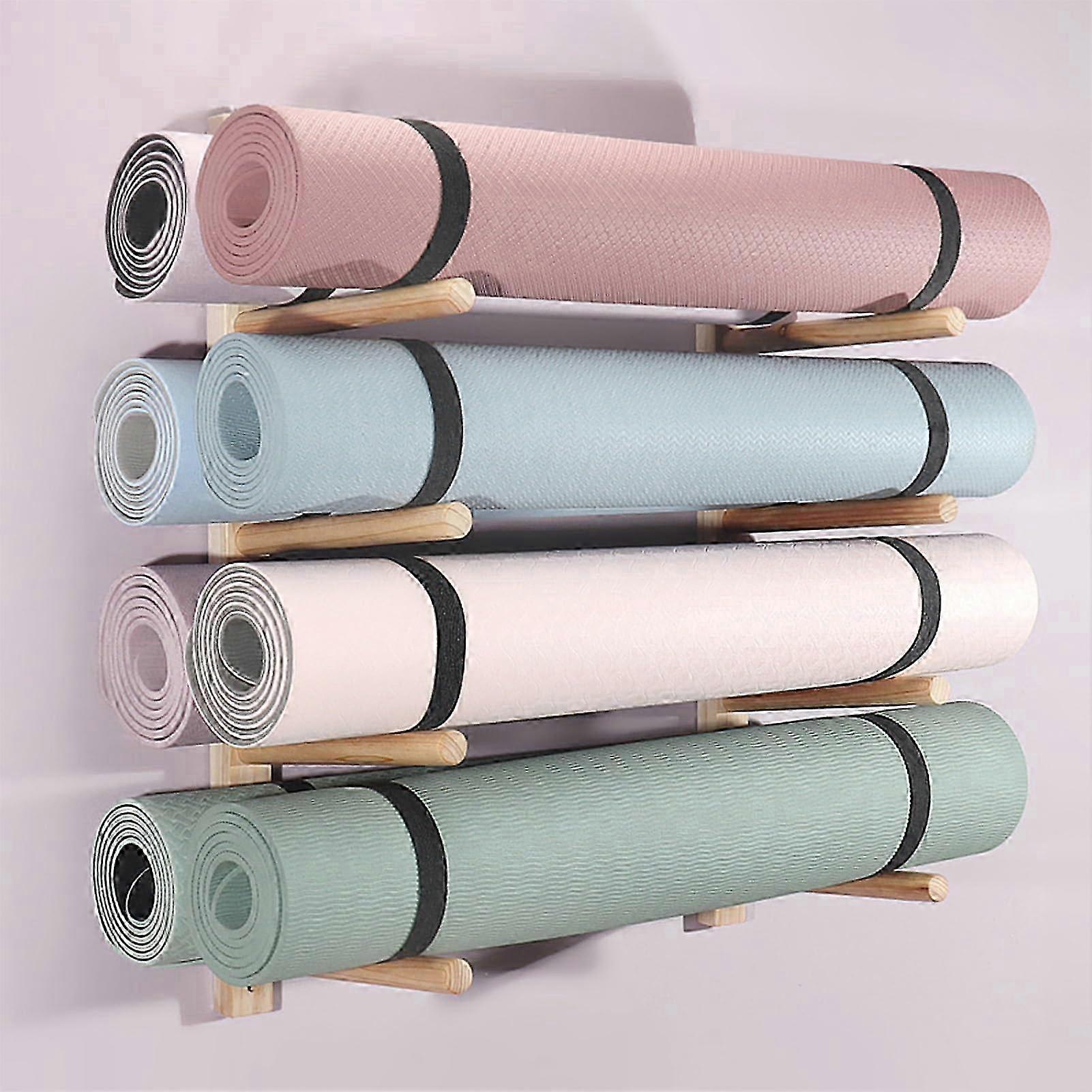 Yoga Mat Stand with Large Capacity Storage Rack: Natural Wood Holder for Home Gym Use