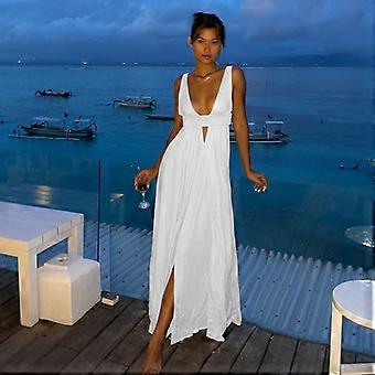 YOUGANG high quality Qy21679 Deep V-Neck Hollow Strap Dress European And American Sexy Backless Elegant Holiday Style White Split Dress
