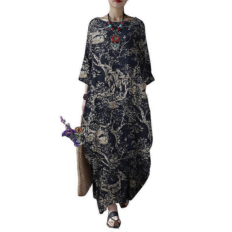 ZANZEA Summer Casual O-neck 3/4 Sleeve Print Cotton Dress