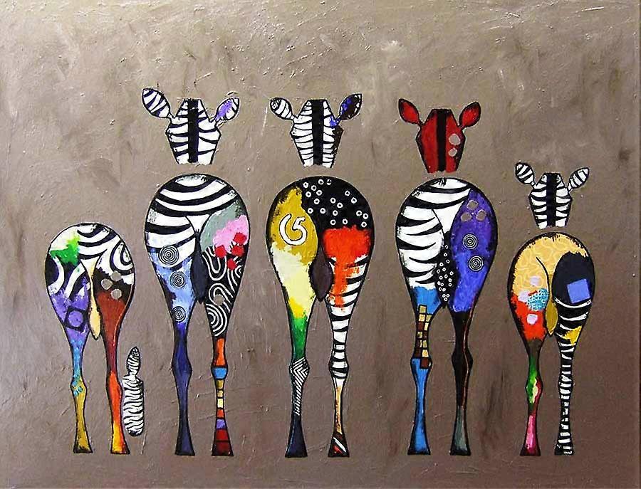 Zebra Herd Colorful Rears Street Art Canvasnot include Frame 40x50cm