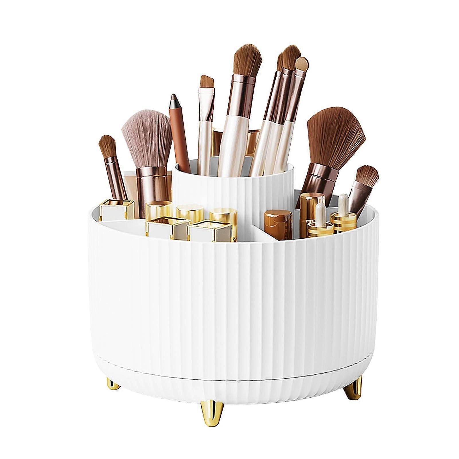 ZENGO 360° Rotating Makeup Organizer - Stylish Cosmetic Storage with 5 Compartments, Skin Care Holder, Large Capacity(White)