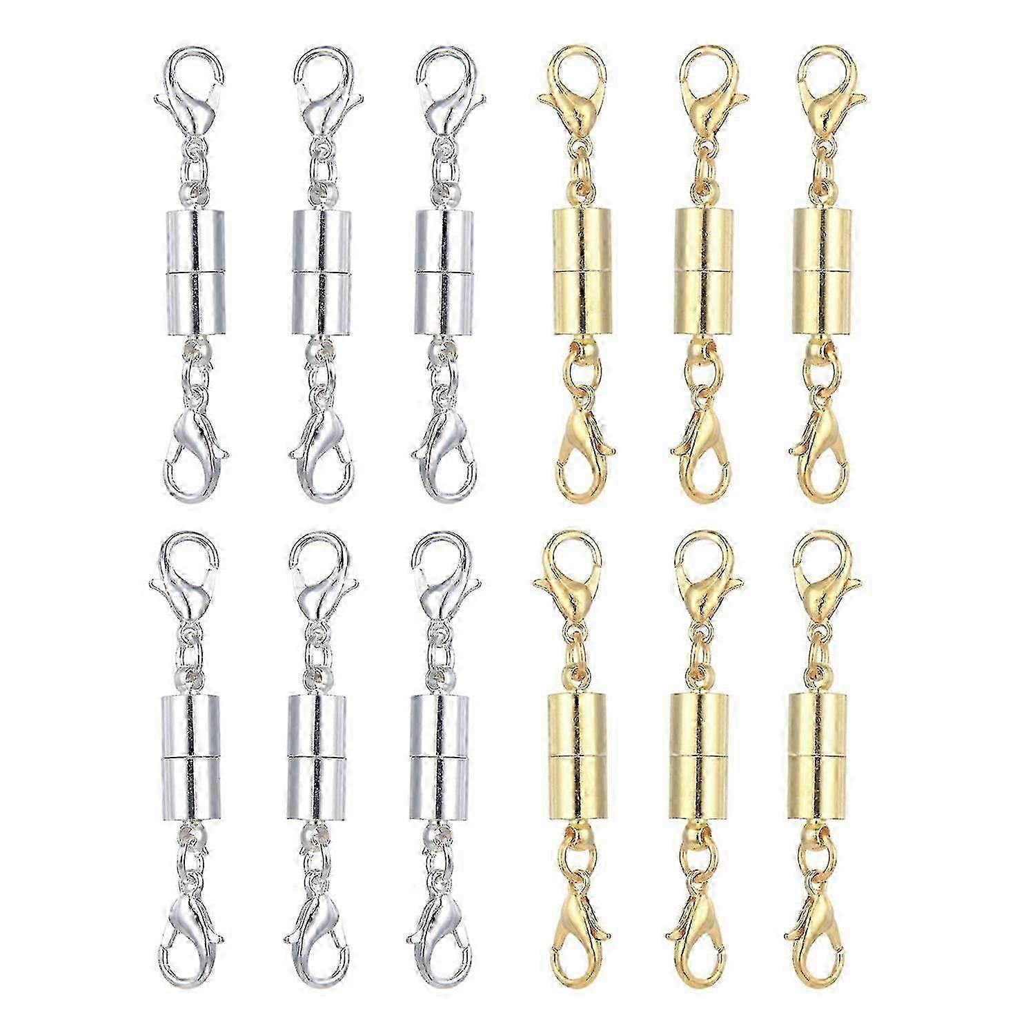ZENGO 12 Pack Magnetic Clasp Converter Double Lobster Magnetic Jewelry Clasps for Necklace Bracelet Clasps, 6 Gold + 6 Silver 6MM