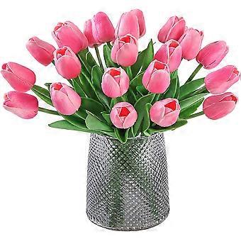 ZOELNIC Artificial Tulips Real Touch Fake Flowers Artificial Tulips Flowers Arrangement Bouquet for Home Room Office Wedding Party, Pink