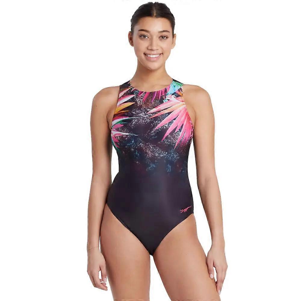 Zoggs Savannah High Front Swimsuit - Black/Pink