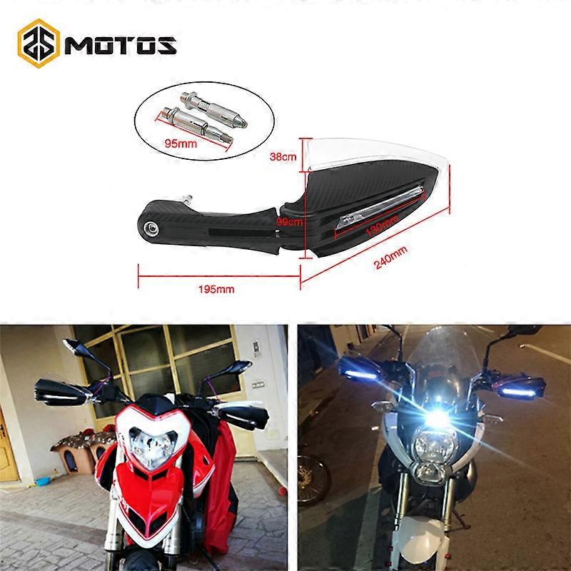 ZS MOTOS 7/8"22.2mm Motorcycle LED handlebar Aluminum Motorcycle Hand Guards with LED Light Bike Universal Hand Protectors Motos Material:PP Plastic + T6 Aluminum Condition: 100% Brand New Quantity: 1 Set Handguard comes equipped with a high quality Aluminum bar for the stongest protection available.paired with the XC protector. constricted of impact resistant plastic to ensure protection of your hands,grips and controls. Available for both Standard or Fat Bars Standard bars:7/8"22.2mm Fit For All kinds of diameter handlebars dirt bike MX Motocross Motorcycle ATV Quad street modification Universal handlebar and other models.